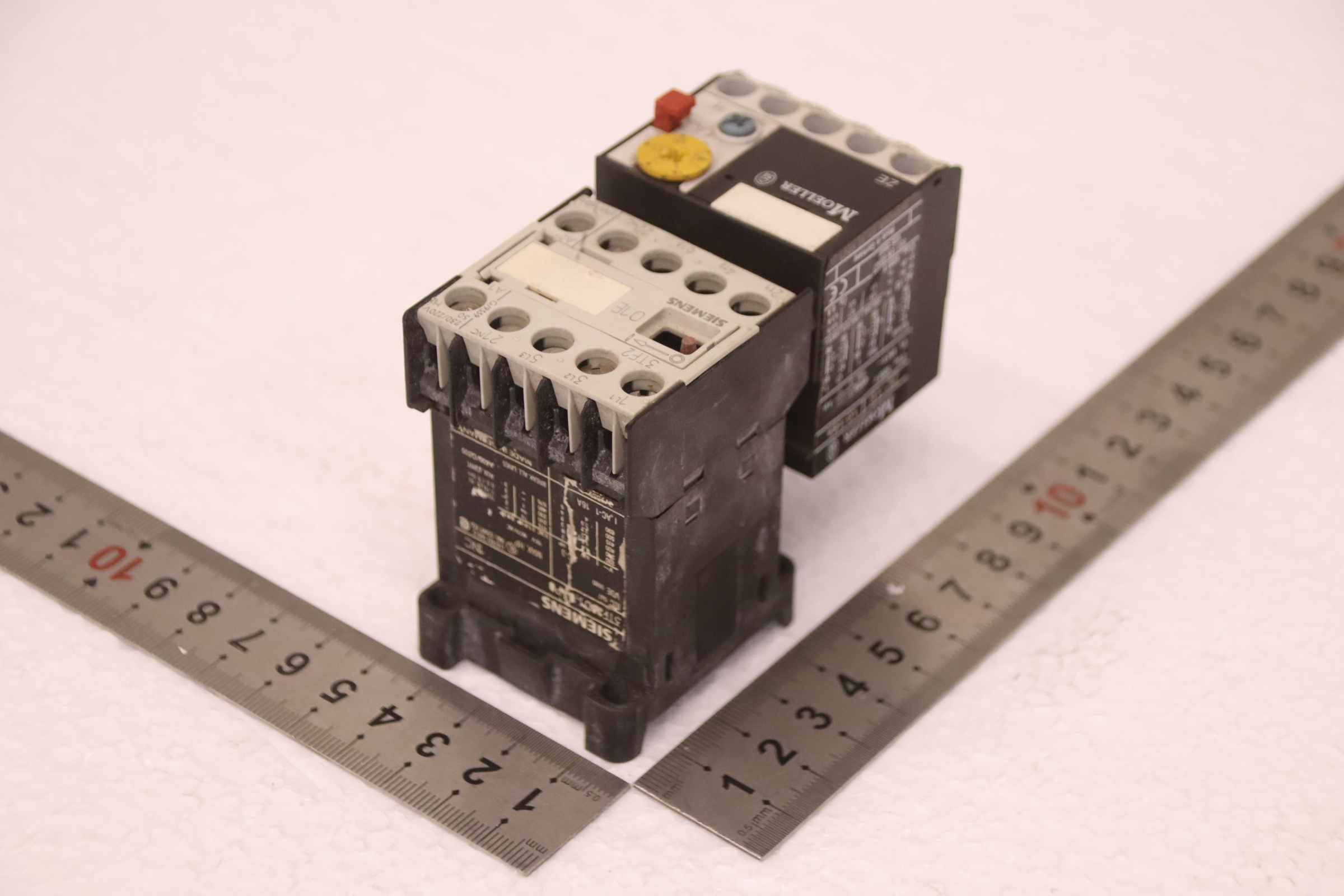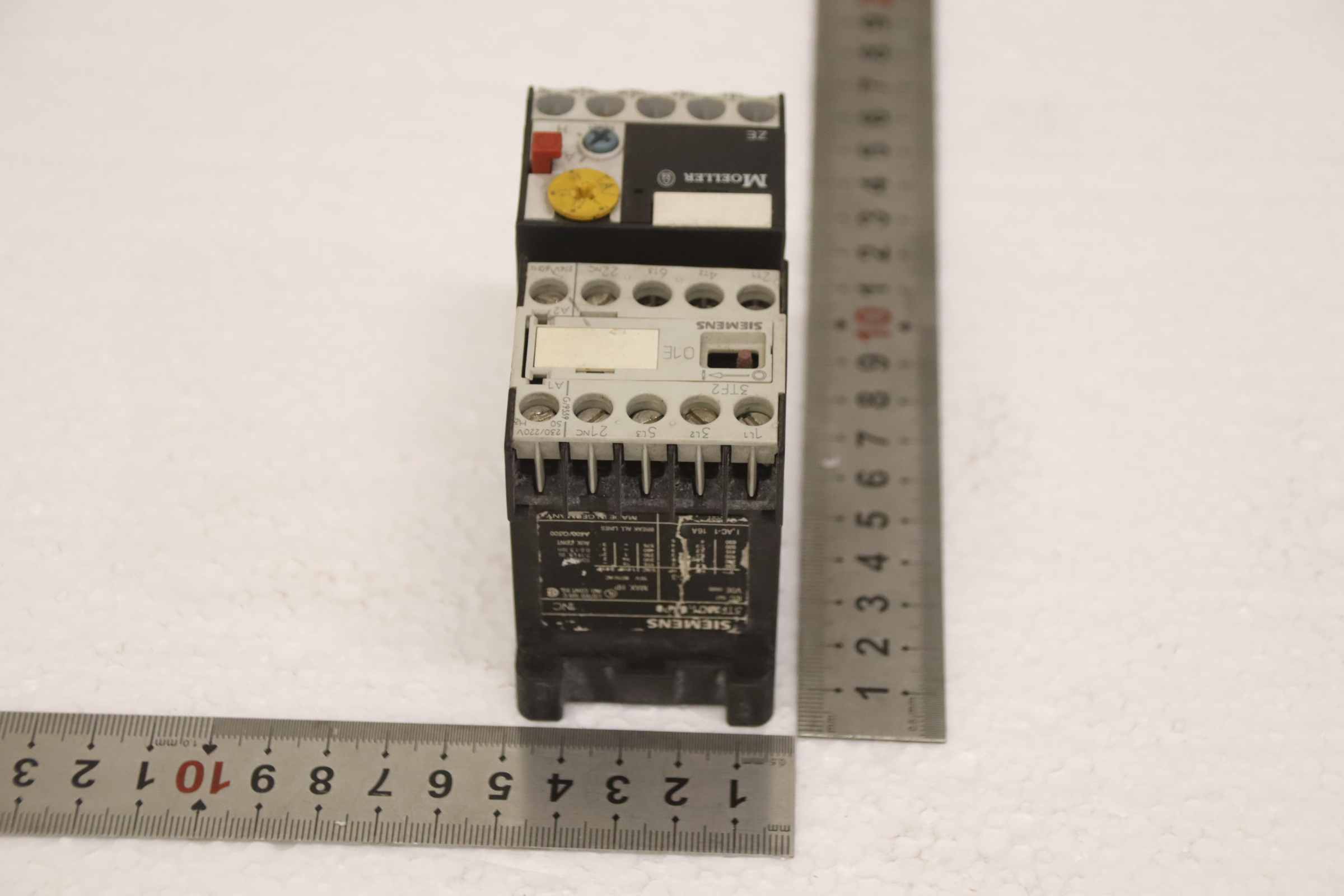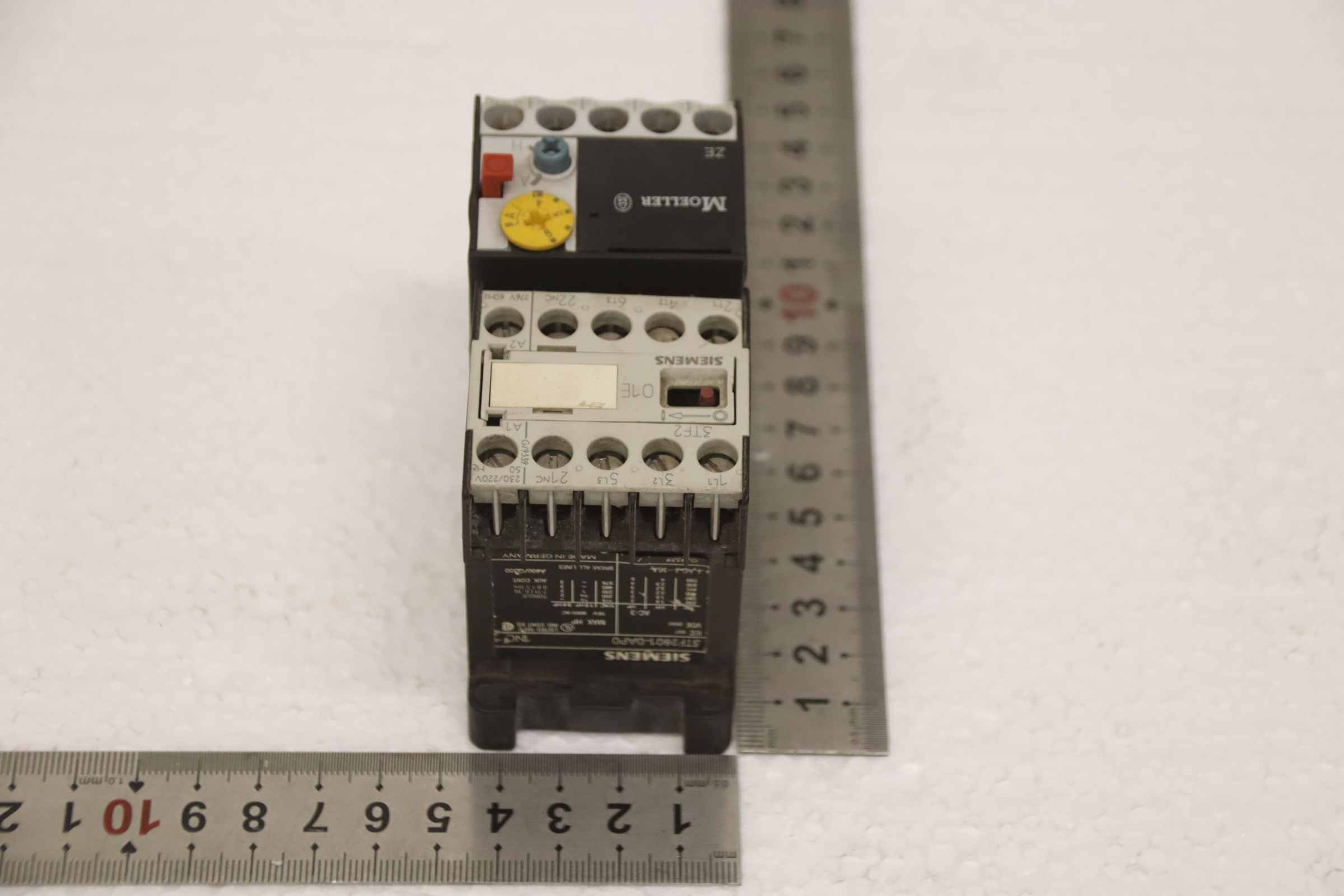 Motorschutzrelais, Relais, Heizstromüberwachung, Vorheitzung für Generatoren, Schütz, Halbleiterschütz, Contactor, Motorschutz-Hersteller: Siemens / Moeller, Motorschutz -Siemens. Typ 3TF2801-0AP0-Moeller: Typ ZE-6-Anzahl: 1x vorhanden-Abmessung: 95/45/H75 mm-Gewicht: 0,3 kg