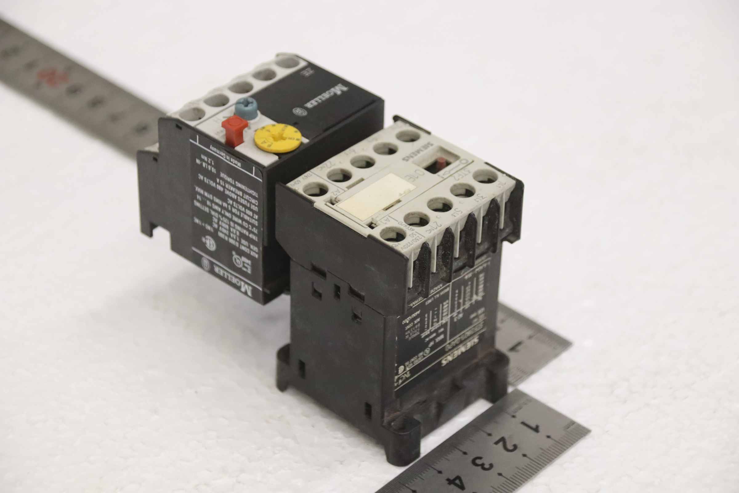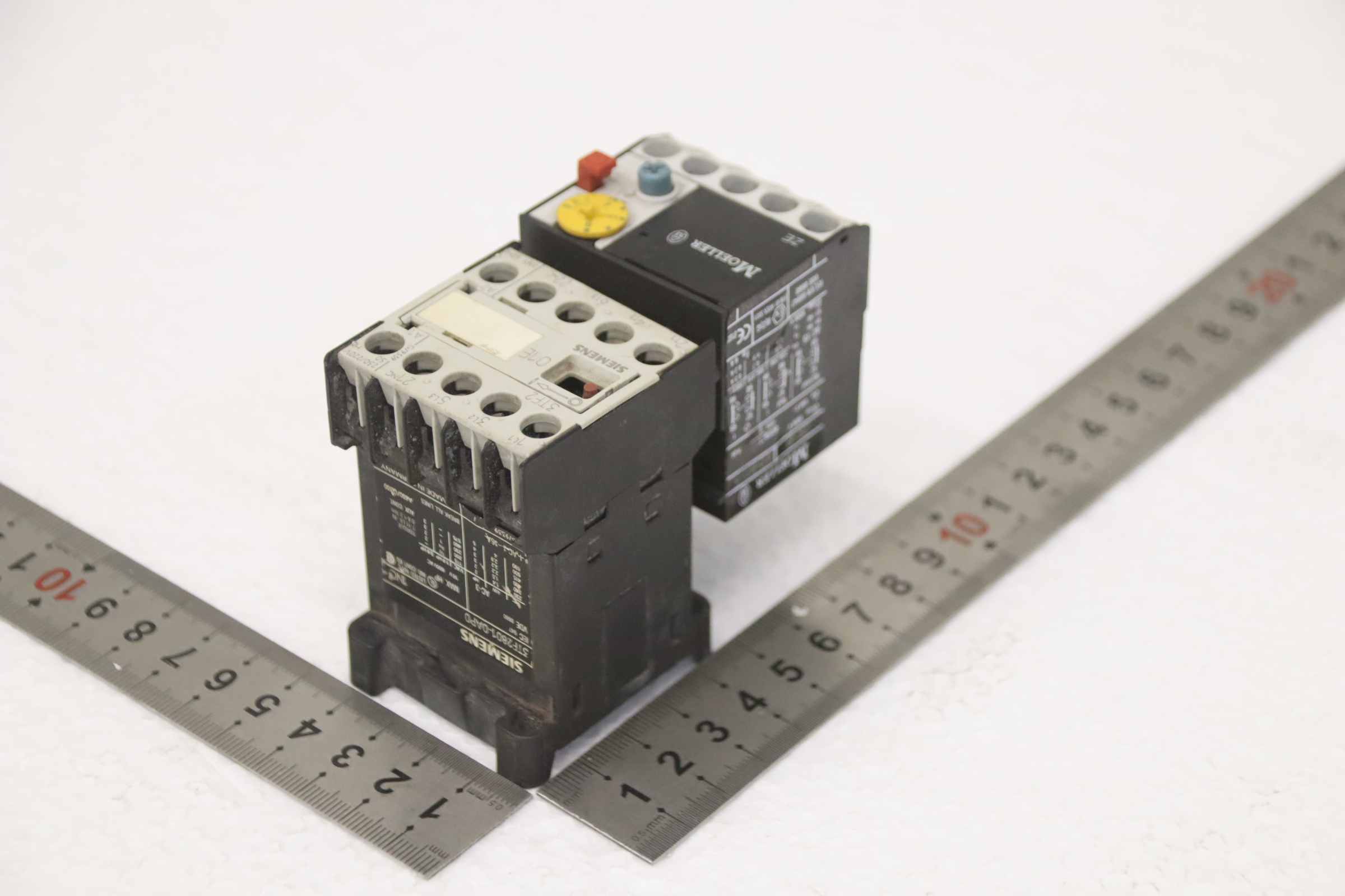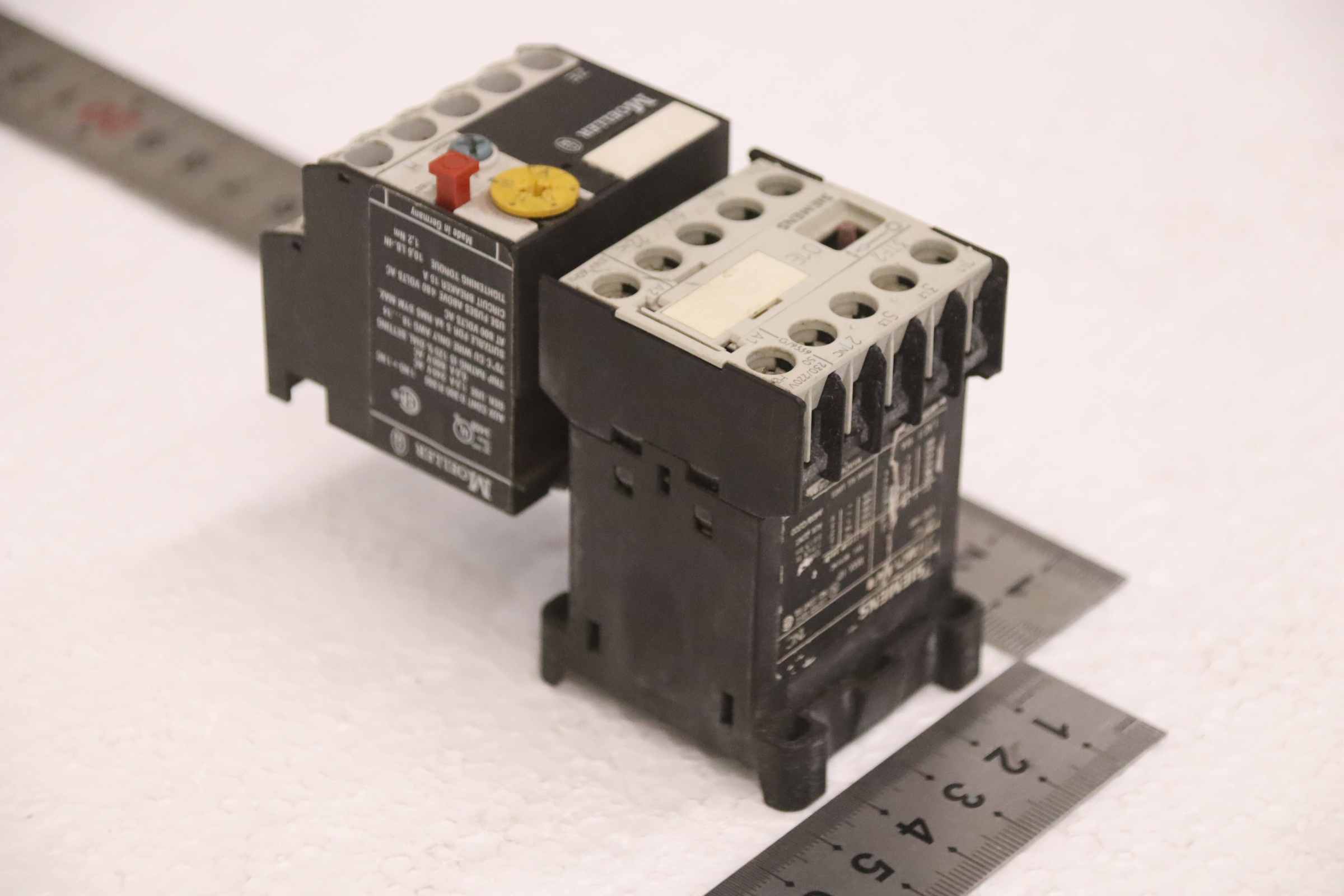 Motorschutzrelais, Relais, Heizstromüberwachung, Vorheitzung für Generatoren, Schütz, Halbleiterschütz, Contactor, Motorschutz-Hersteller: Siemens / Moeller, Motorschutz -Siemens. Typ 3TF2801-0AP0-Moeller: Typ ZE-6-Anzahl: 1x vorhanden-Abmessung: 95/45/H75 mm-Gewicht: 0,3 kg