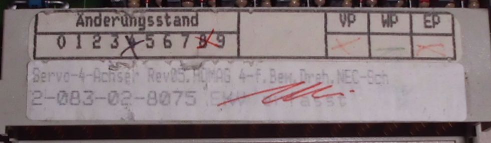 Ausgabemodul, CPU Karte, Eingabeprozessor, Netzteil, Steuerkarte, Eingangskarte, Steuerung, Kantenanleimmaschine, Kantenanleimer-Hersteller: Homag Homatic-Typ: 2-083-02-8075-Typ: 2083028075-Servo-4-Achskarte-Bew.Drehg.Necs.Ab Rev5-Anzahl: 1x Steuerkarten vorhanden-Preis: pro Stück-Abmessungen: 20/195/H265 mm-Gewicht: 0,5 kg