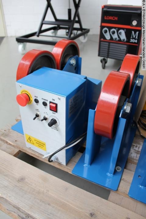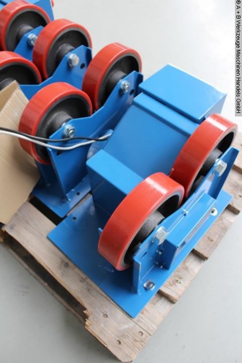 Gebrauchte A+B HGK-5. Tragkraft: 5000 kg Drehgeschwindigkeit des Tisches: 6 - 60 m/h Rollendurchmesser: 250 x 120 mm Werkstückdurchmesser: 250 - 2.800 mm Gewicht: 300 kg Abmessung L-B-H: 0 mm Antrieb Abmessung L-B-H: 0 mm Mitläufer Gesamtleistung: 0,75 kW Stabiles Drehen Die HGK_Serie verfügt über zwei synchron arbeitende Antriebseinheiten, die für eine kontinuierliche Drehung mit stufenloser Drehzahlregelung sorgen. Der Rollenabstand kann mittels Steckbolzen manuell vergrößert und verkleinert werden, um einen großen Durchmesserbereich der Werkstücke zu erreichen. Eigenschaften: - Zum Drehen und Positionieren - im Bereich Maschinen-, Behälter-, Anlagen- und Rohrleitungsbau - Zwei synchron laufende Antriebsmotoren - Einstellbare Drehgeschwindigkeit. - PU-Rollen - Die Verstellung erfolgt über Bolzen - Fernsteuerung Lieferumfang: - 1x Steuerung - 1x angetriebene Einheit - 1x mitl ...