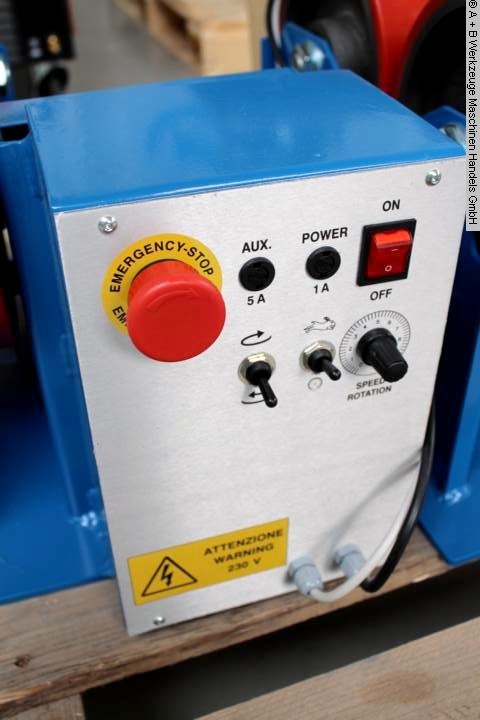 Gebrauchte A+B BDV 3,0 T. Tragkraft: 3000 kg. Drehgeschwindigkeit des Tisches: 120 - 1200 mm/min. Rollendurchmesser: 250 x 75 mm Werkstückdurchmesser: 150 - 2000 mm Volt: 230 V / 50 Hz Abmessung L-B-H: 1210 x 300 x 480 mm Mitläufer Gewicht: 154 kg Abmessung L-B-H: 1510 x 500 x 480 mm Antrieb Ausstattung: - Besteht aus einer Antriebseinheit und einer Mitlaufeinheit. - Saubere, flüssige Drehbewegung auch im unteren Geschwindigkeitsbereich. - PU-Rollen. - Behälterdurchmesser ist schnell und einfach einstellbar über Steckbolzen. - Handfernsteuerung zum Einstellen der Geschwindigkeit und Rechts-/Linkslauf. - Fußschalter. - Kompakte, stabile Struktur, einfach zu bedienen. Lieferumfang: - 1 Steuerung (integriert) - 1 Fußschalter - 1 Kabelfernbedienung - Bedienungsanleitung auf Deutsch Die Daten fü, dieses Inserat wurden erstellt mit ModulMWS - die Maschinenverwaltung von LogoTech o ...