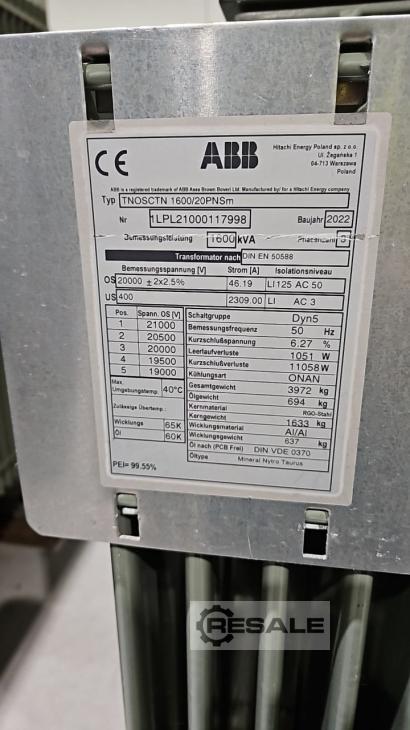 Maschinentyp: Transformator 1600 kVA 20 kV Öltrafo Bj. 2022