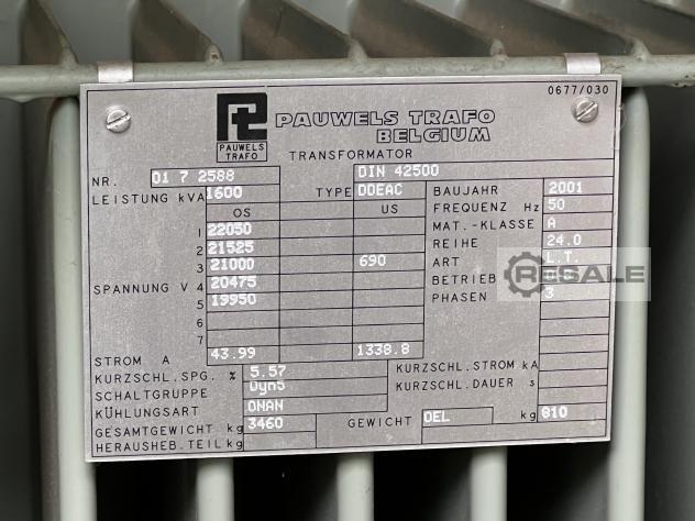Maschinentyp: Trafostation Transformator Trafo 1600KVA 20KV-690V