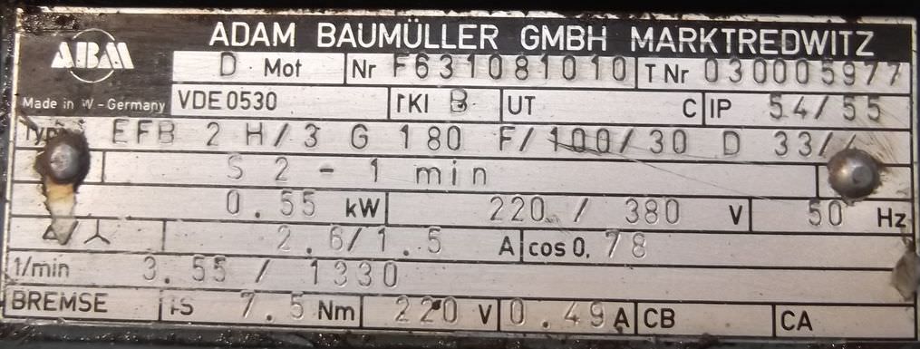 Maschinentyp: Getriebemotor 0,55 kW 3,55 U/min