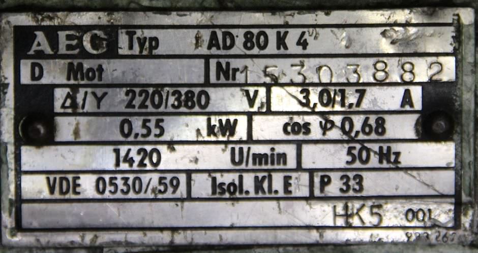 Maschinentyp: Elektromotor 0,55 kW 1420 U/min