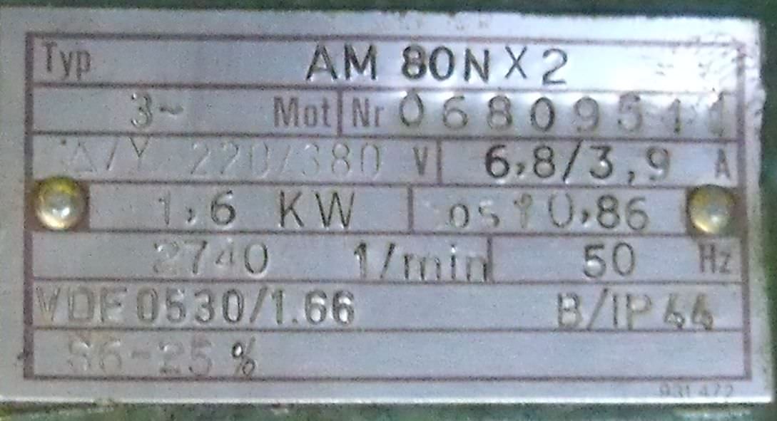 Maschinentyp: Elektromotor 1,6 kW 2740 U/min