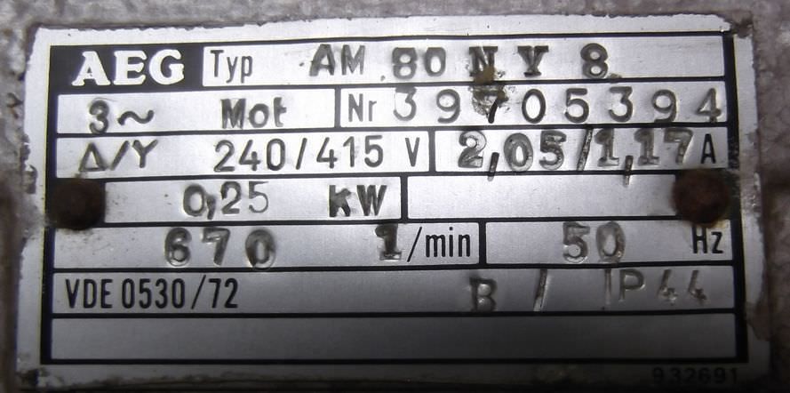 Maschinentyp: Elektromotor 0,25 kW 670 U/min