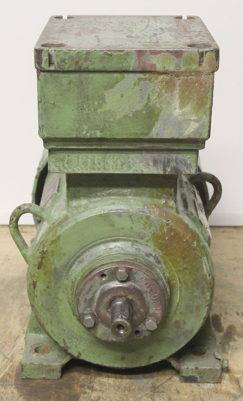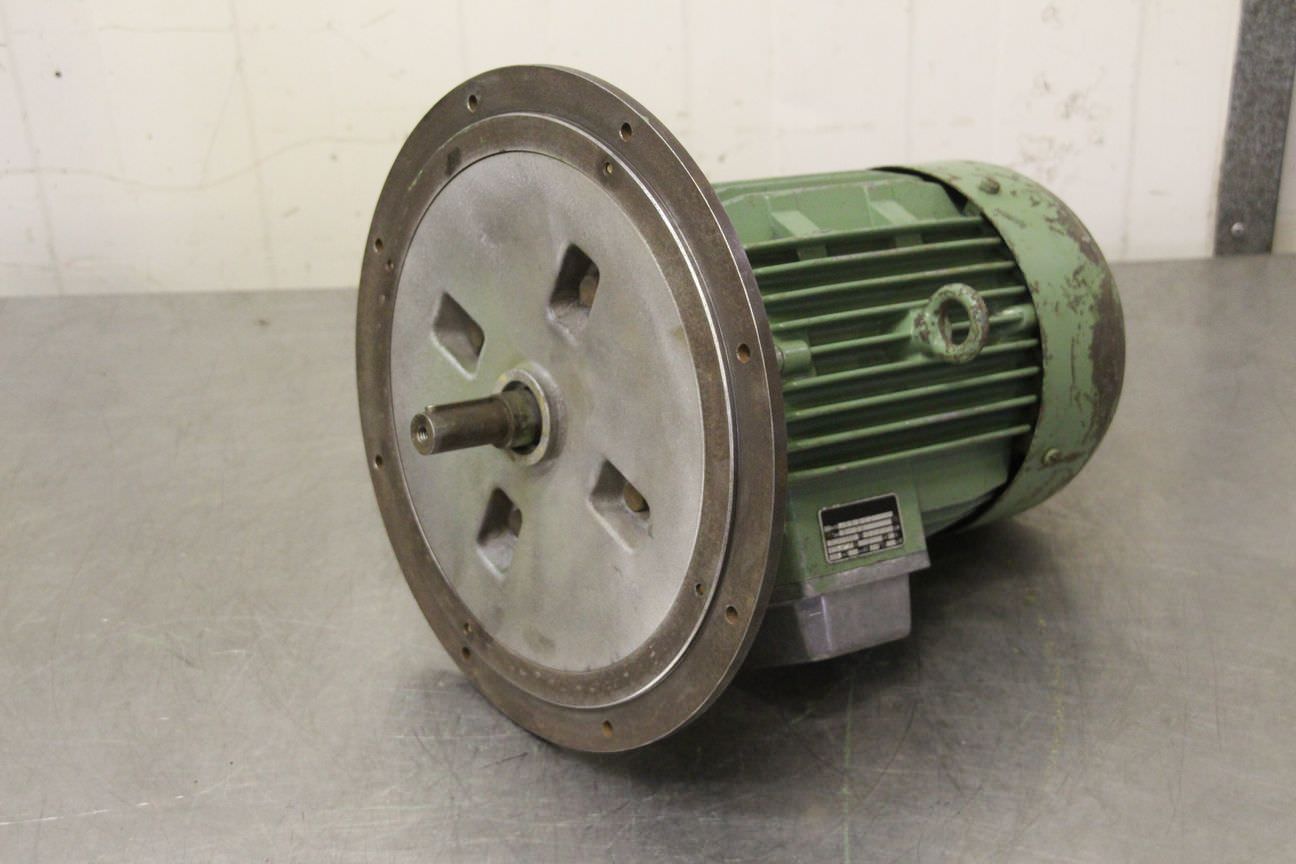 Gebrauchte AEG AM 132 SV4. Elektromotor, Drehstrommotor -Leistung: 5,5 kW -Drehzahl: 1460 U/min -Welle: Ø 38 mm -Bauform: B3 -Schutzart: IP 44 -Preis: pro Stück -Anzahl: 1x vorhanden -Abmessungen: 430/315/H240 mm -Gewicht: 44 kg