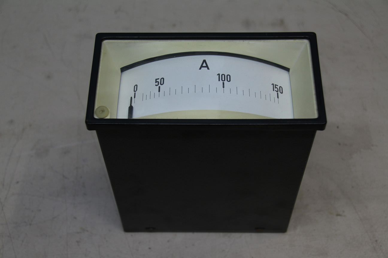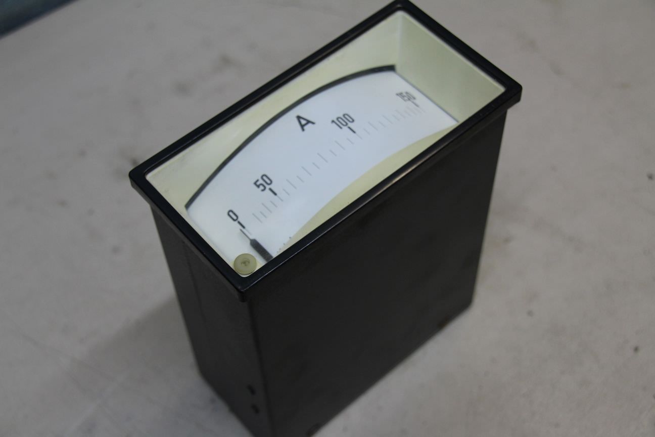 Gebrauchte AEG Stromstärkemessgerät, Amperemeter 0-150A. Einbaumessgerät, Einbau-Messinstrumente, Messwerk, Drehspulinstrumente, Drehspulmesswerk, Schalttafel -Anzeigebereich: 0 A - 150 A -Einbaumaß: LxBxT ca. 66x138x175 mm -Anzahl: 3x vorhanden -Preis: pro Stück -Abmessungen: 72/144/H175 mm -Gewicht: 1 kg