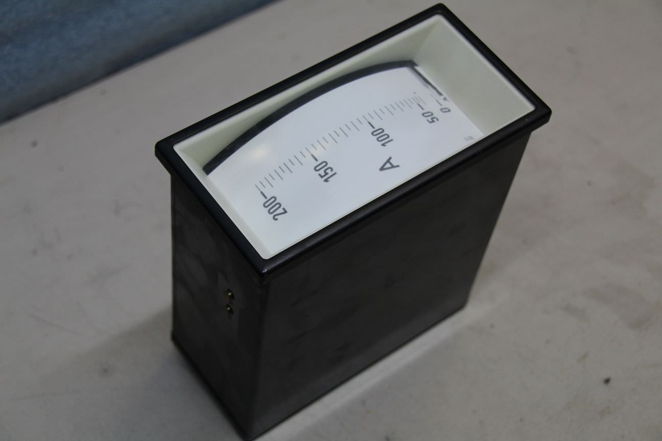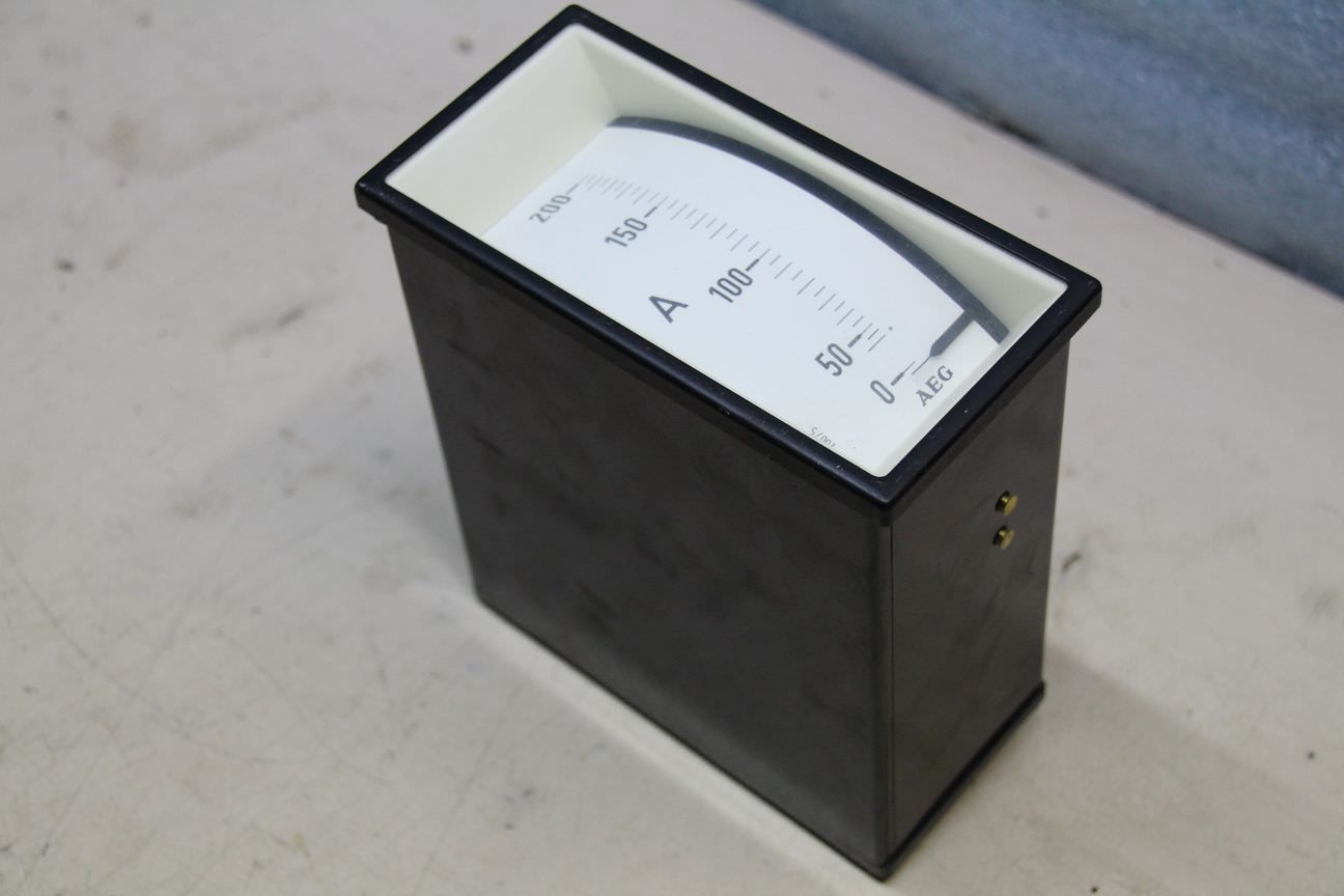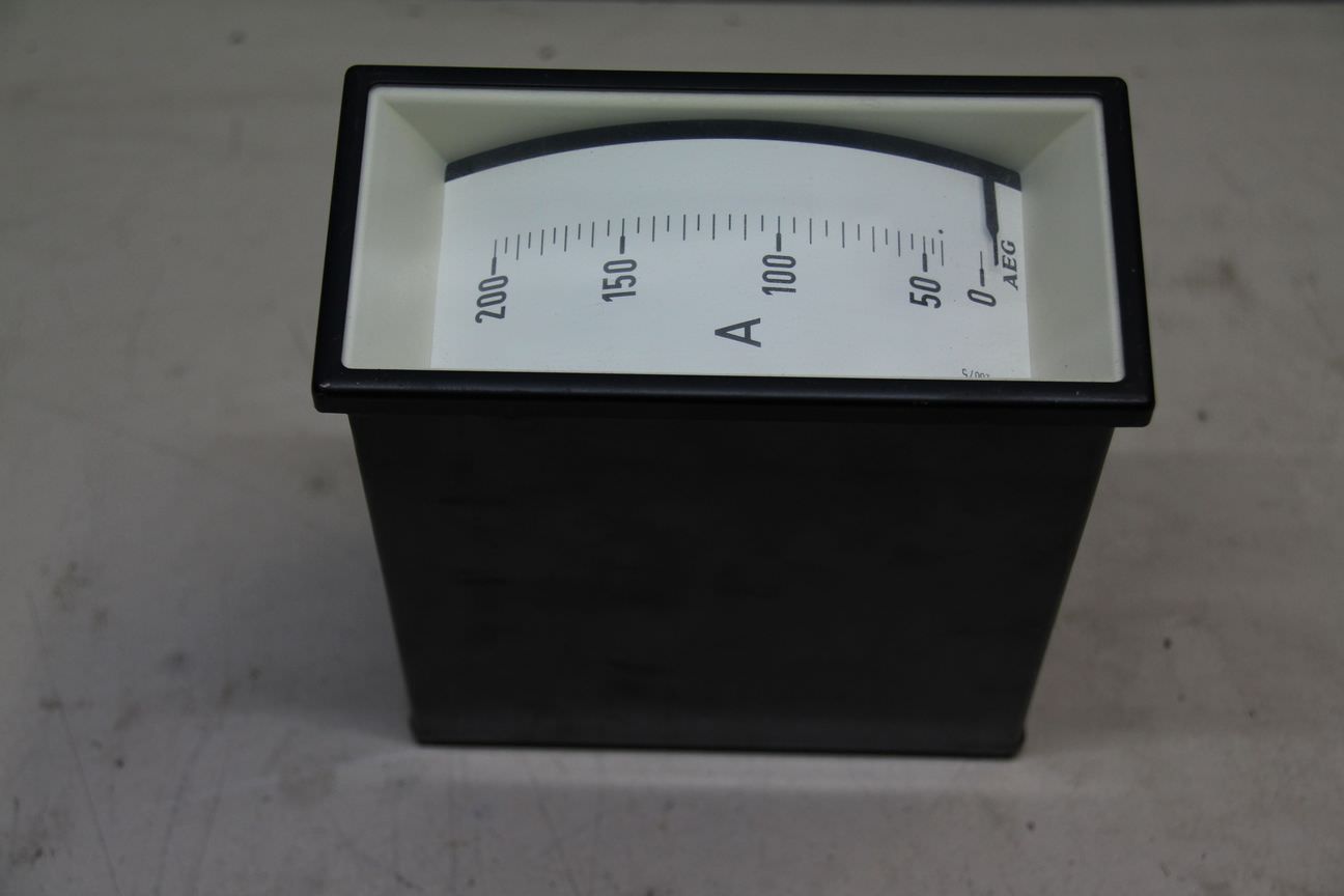 Gebrauchte AEG Stromstärkemessgerät, Amperemeter 0-200A. Einbaumessgerät, Einbau-Messinstrumente, Messwerk, Drehspulinstrumente, Drehspulmesswerk, Schalttafel -Anzeigebereich: 0 A - 200 A -Wechselstrom -Einbaumaß: LxBxT ca. 66x138x165 mm -Anzahl: 3x vorhanden -Preis: pro Stück -Abmessungen: 72/144/H165 mm -Gewicht: 0,7 kg