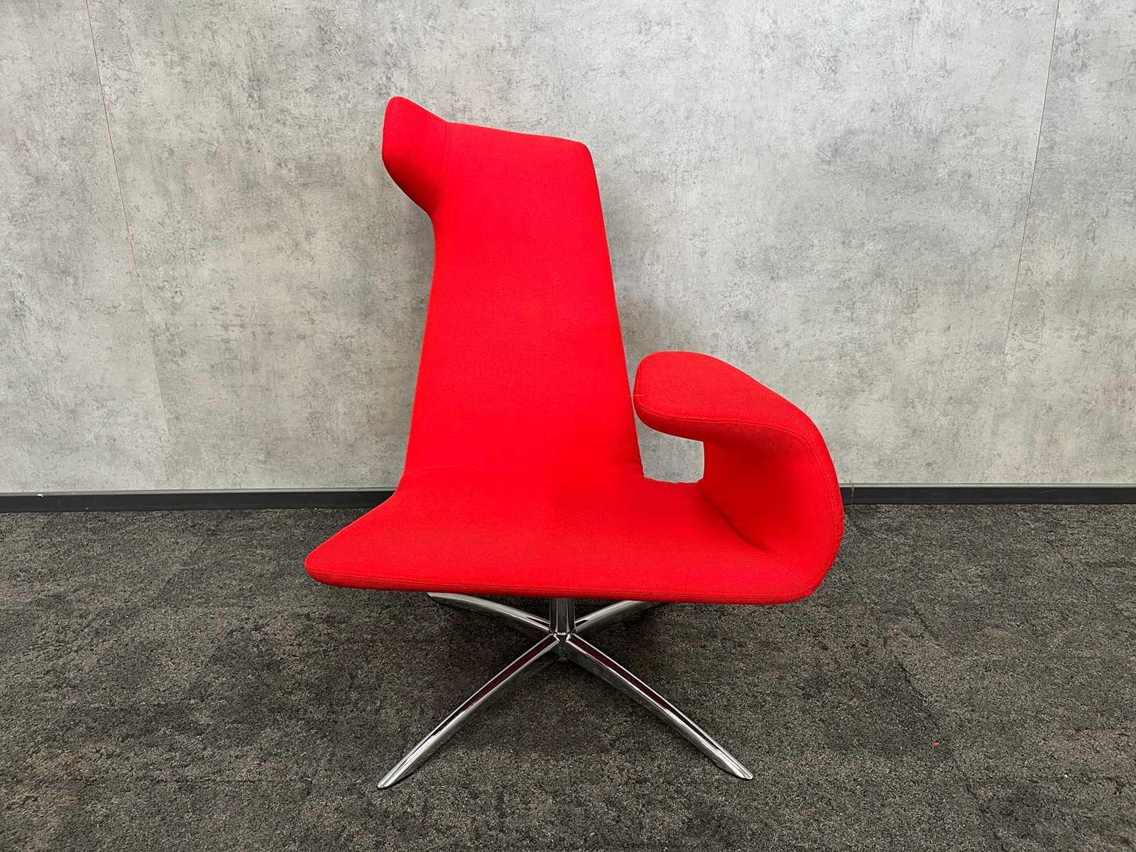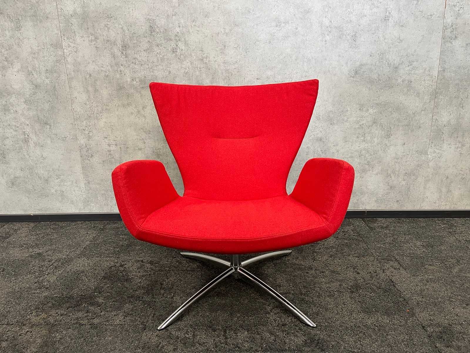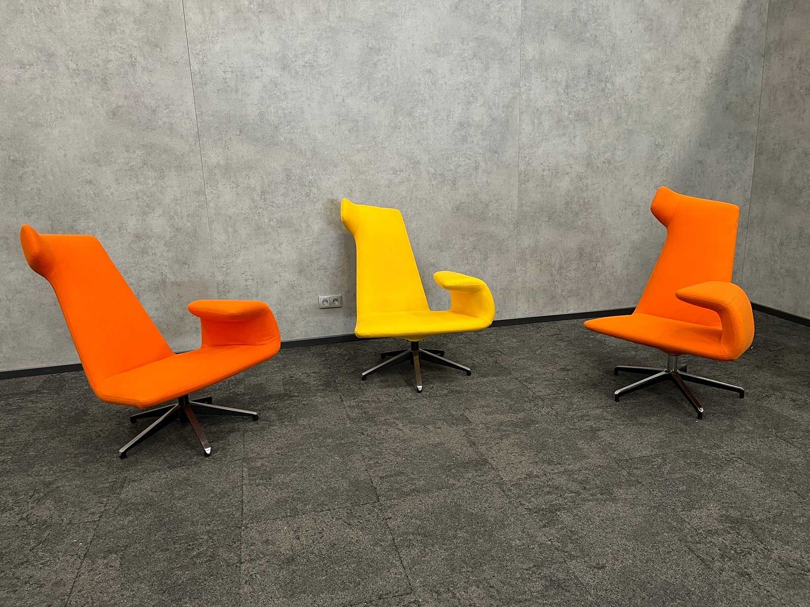 Dimm. Sessel ca. hxbxd 70x150x90 cm. Sitzhöhe ca. 40 cm. -- Dim. Design-Couchtisch, ca. 51 cm Höhe. und Durchmesser 50 cm. Auktions-ID: A1-44654-89