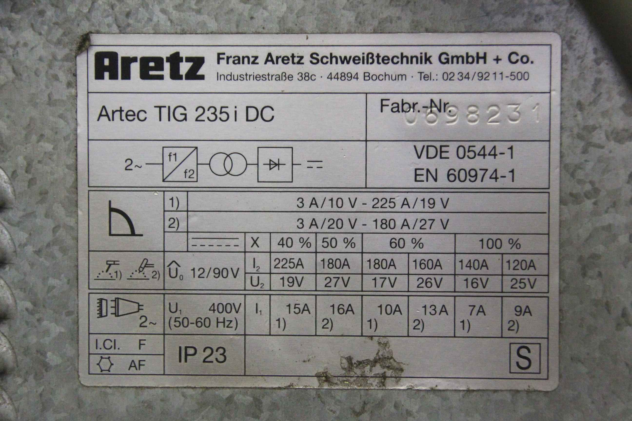 WIG Schweissgerät 225 A ARTEC TIG 235 i DC
