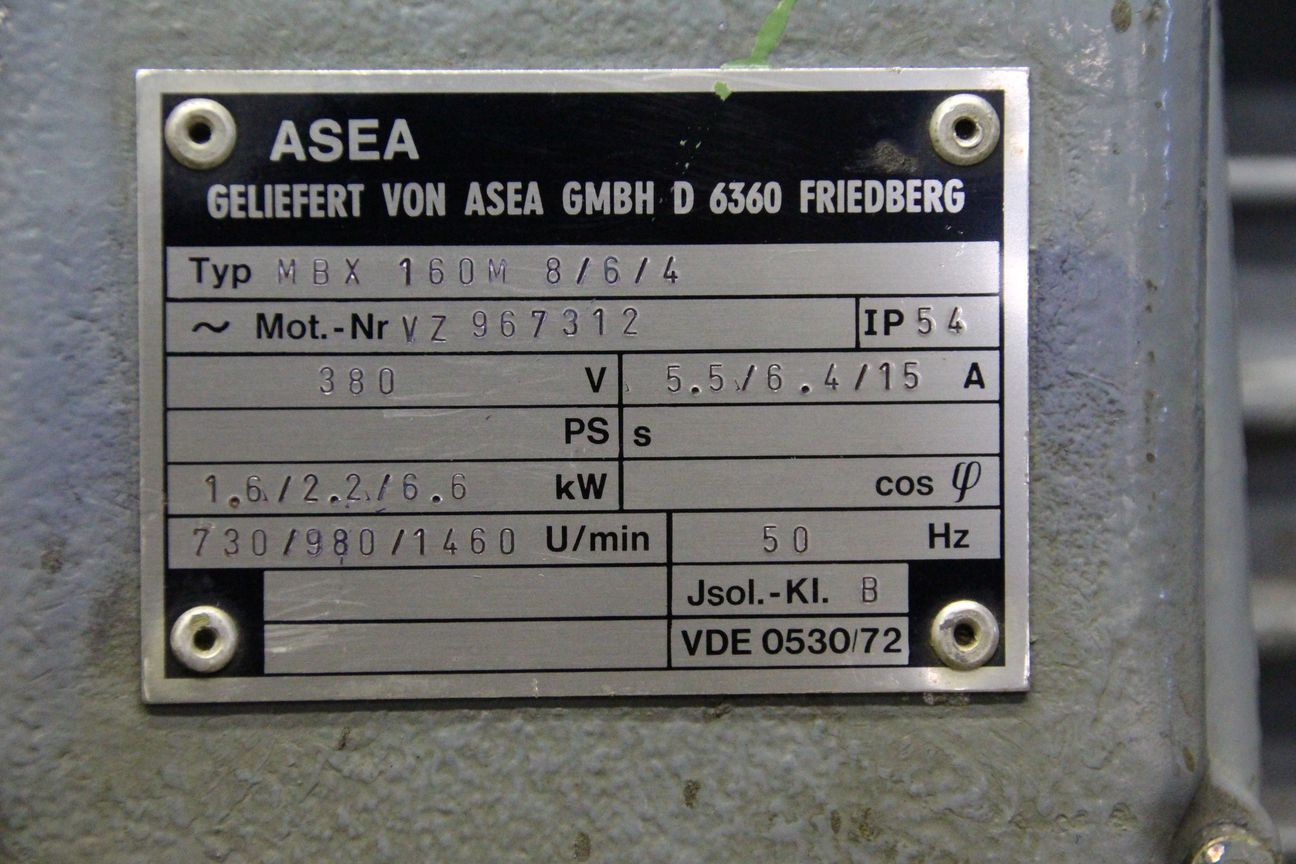 Maschinentyp: Elektromotor 1,6/2,2/6,6 kW 730/980/1460 U/min