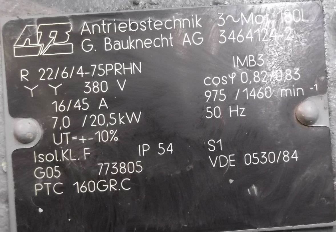 Maschinentyp: Elektromotor 7/20,5 kW 975/1460 U/min