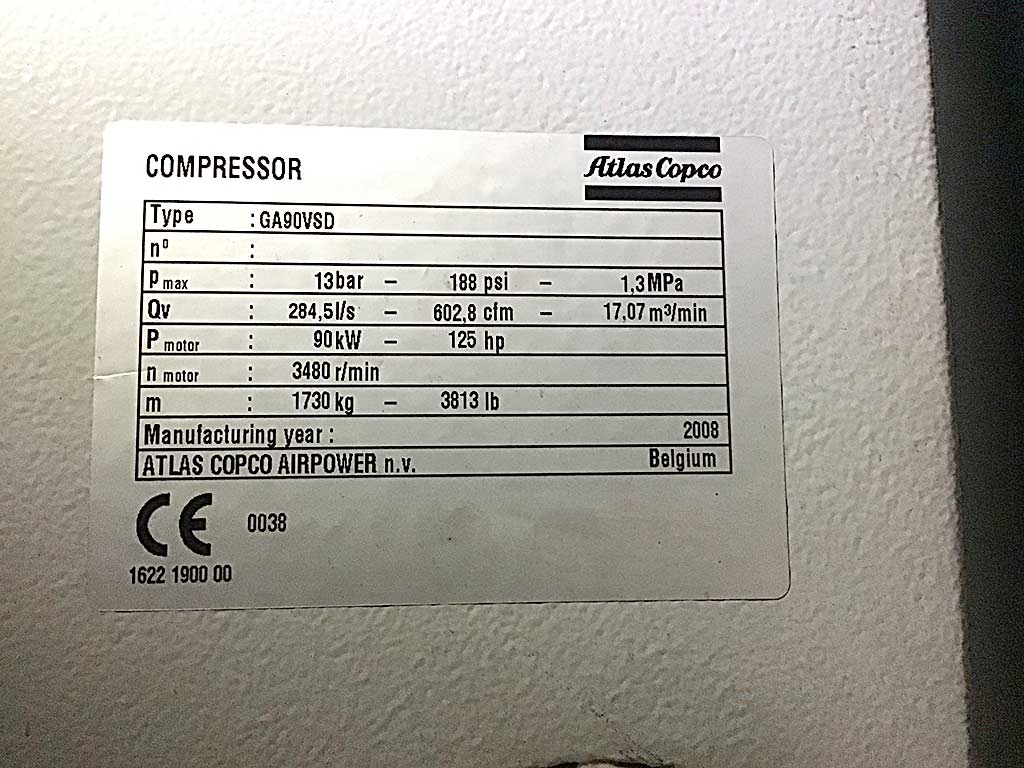 | 2004 | ATLAS COPCO | GA 90 VSD FF | |