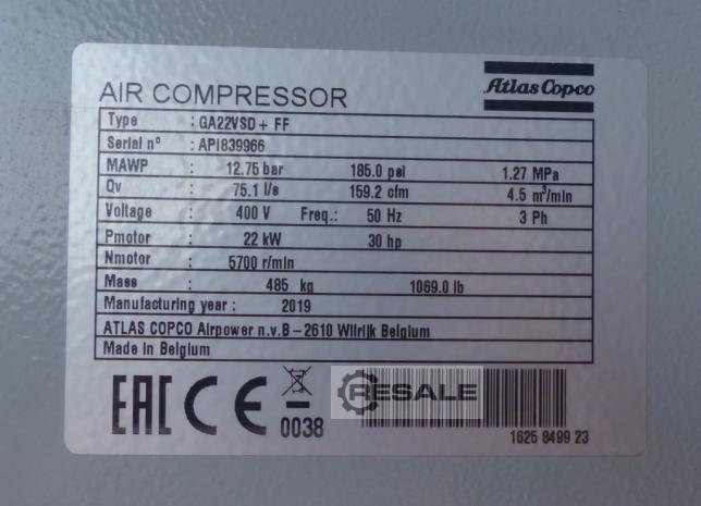 | 2010 | ATLAS COPCO | GA22VSDFF | 6300 EUR | [Nov 2015] |