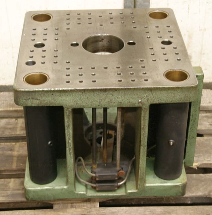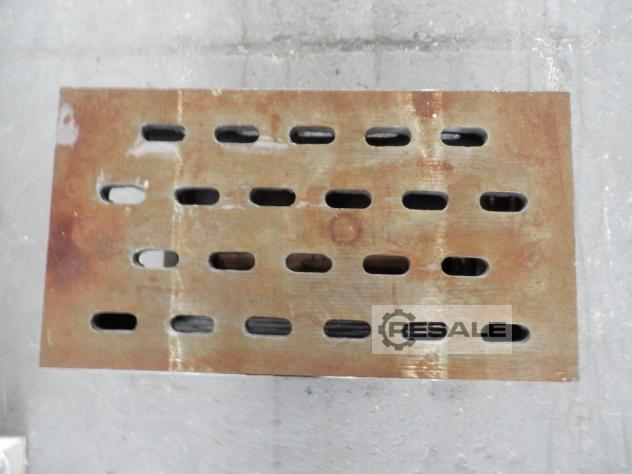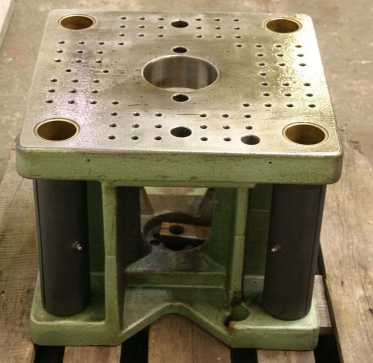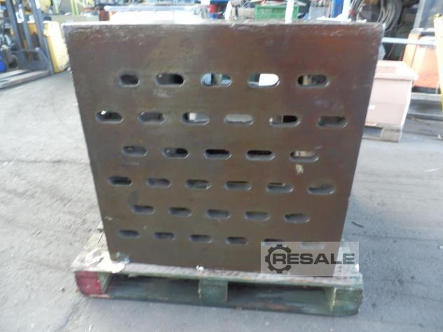 Aufspannwinkel, T-Nutenplatte, Aufspanntisch, Aufspannwürfel, Aufspannplatte, Spannturm, Spannkasten -Tisch: kommt von einer Spritzgießmaschine -Fabrikat: Arburg -Typ: -Abmessungen Tisch: 735 x 665 mm -Bohrung Mitte: Ø 125 mm -Gewinde Bohrungen: M12 -Abmessungen: 735/665/H185 mm -Gewicht: 230 kg