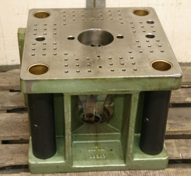 Schwenkbarer Würfeltisch für Radialbohrmaschinen Tischgröße: - horizontal: 500 x 600 mm - vertikal: 310 x 600 mm Neigbar: 90° Abmessungen LxBxH, ca.: 700 x 520 x 520 mm Gewicht, ca.: 280 kg