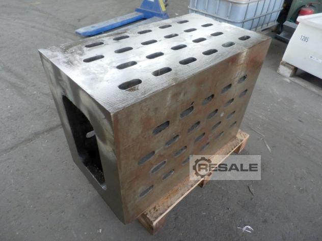 Aufspannwinkel, T-Nutenplatte, Aufspanntisch, Aufspannwürfel, Aufspannplatte, Spannturm, Spannkasten -Aufspannwürfel: Winkel verstellbar 90° -Nutbreite: 28 mm -Nutabstand: 150 mm -Maße: siehe Fotos / techn Zeichnung -Abmessungen: 1000/800/H630 mm -Gewicht: 871 kg