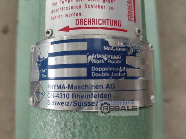 Excenterschneckenpumpe Hersteller: Fryma Typ: N20A Baujahr: 1990 mit Stöber-Getriebe drehzahlgeregelt Drehzahl: 126/880 U/min sehr guter Zustand LBH: 1250 x 300 x 300 mm