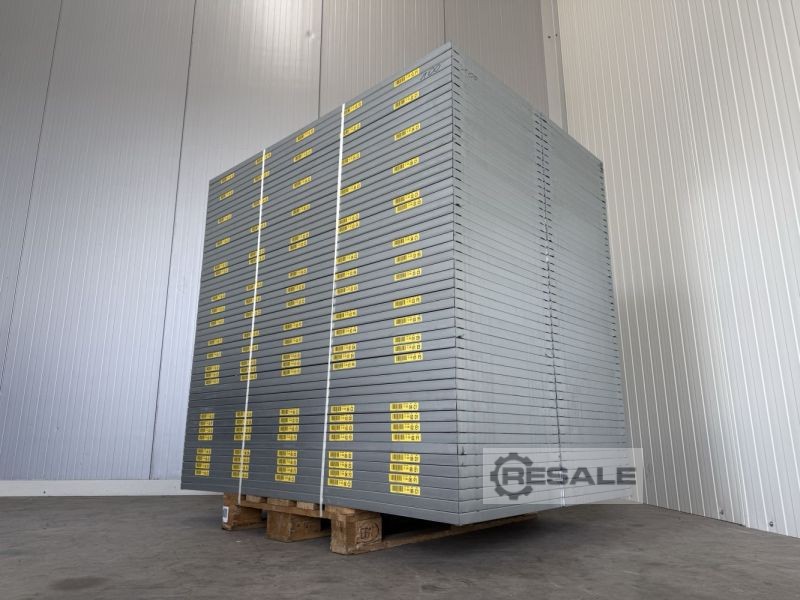 Technische Daten zum Kistenregal: Regalsystem: Stow Typ: Midirack Technische Daten zur Aufstellung: Anzahl Regalreihen: 01 Stck. Regallänge: 2.810 mm Anzahl Felder je Regalreihe: 01 Stck. Anzahl Ebenen zzgl. Bodenebene: 06 Stck. Im Lieferumfang sind enthalten: 02x Regalständer, gebraucht Materialfarbe: sendzimir verzinkt Ständerprofilabm: 55 x 45 x 1,5 mm inkl. Quer- u. Diagonalstreben, Fußplatten Die Ständer sind vormontiert 2.000 mm hoch 600 mm tief 08x Regaltraversen, gebraucht Materialfarbe: gelb Z-Profil: 74 x 30 mm Agraffe: 2 HK (Haken) lichte Weite: 2.700 mm 16x Sicherungsstifte, gebraucht Materialfarbe: sendzimir verzinkt Zur Absicherung der Längsträger gegen unbeabsichtigtes herausheben 04x Spanplatten, gebraucht Stärke: 22 mm Breite: ca. 2.680 mm Tiefe: ca. 590 mm Oberfläche: ggf. beschichtet (ggf ...