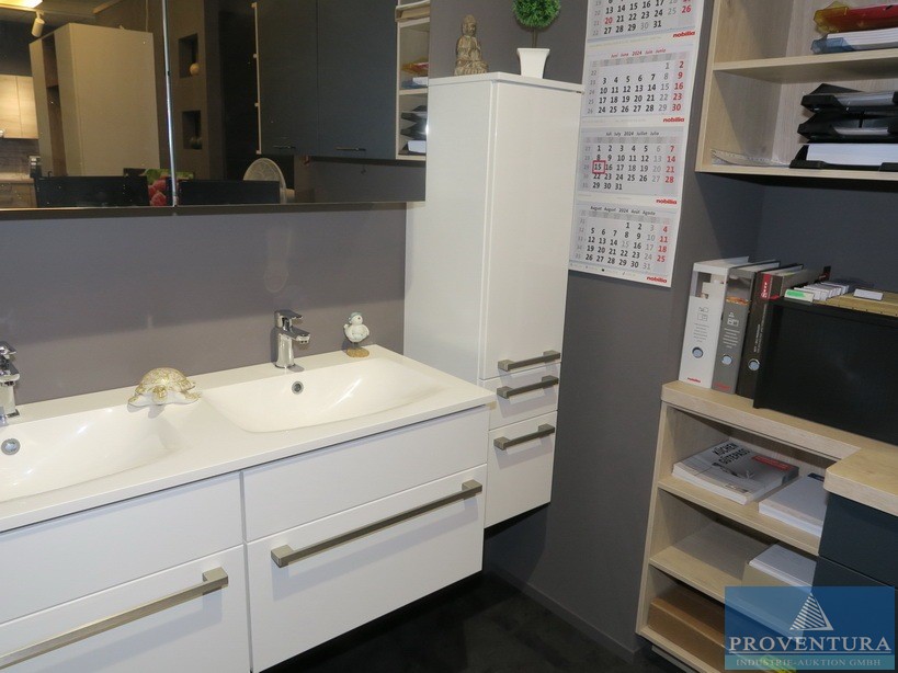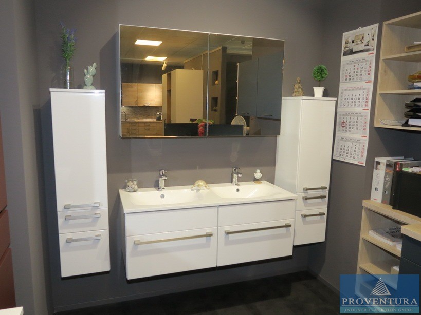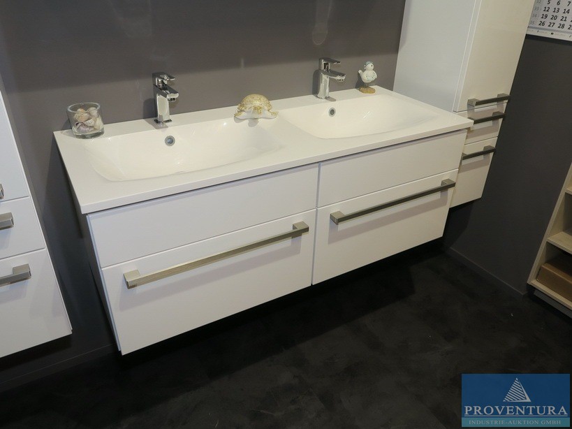 Badmöbel-Set NOBILIA Holz Dekor weiß, Fronten weiß, Spiegelschrank und Doppel-Waschtisch ca. 120cm breit, Hängeschränke ca. 35cm breit