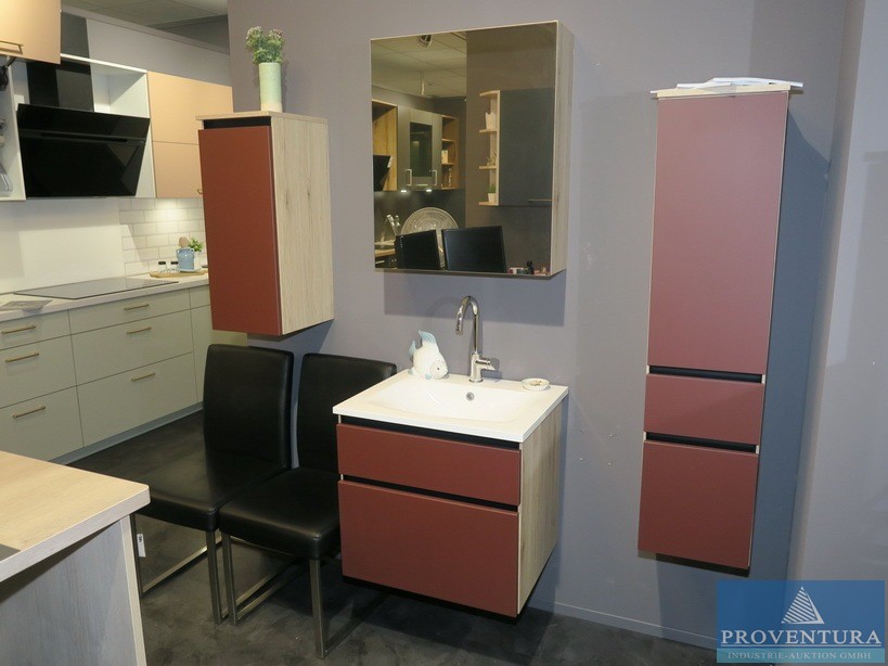 Badmöbel-Set NOBILIA Holz Dekor hell Fronten rotbraun, Spiegelschrank und Waschtisch ca. 60cm breit, Hängeschränke ca. 30cm breit