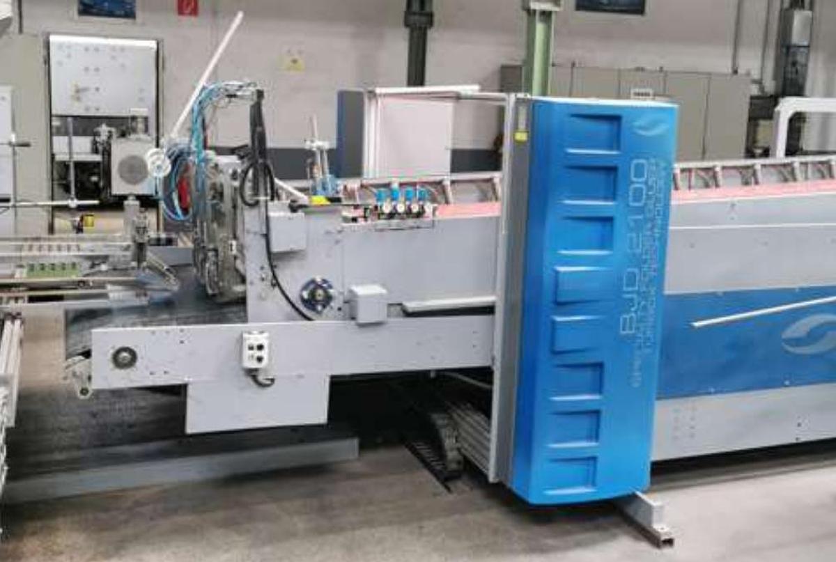 Bahmüller Turbox BJD 2100, Max.Size: 2100x1200 mm, Min.Size: 380x160 mm, Längsnahtklebung, Automatikboden, 4-6 Punktklebung, Vollpappe: 800-1500 g/qm, Hebklwexni D Eevy Aefn, Corrugated: N,F,E,B,C,A,EE,EB,BC etc.