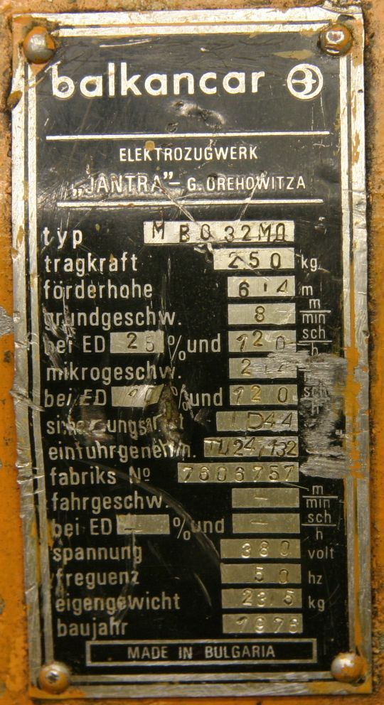 Maschinentyp: Kettenzug 250 kg