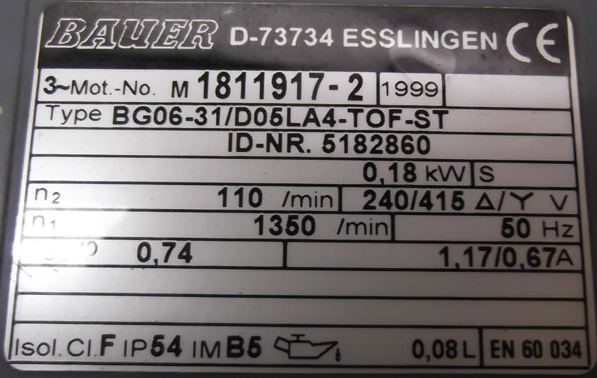 Maschinentyp: Getriebemotor 0,18 kW 110 U/min