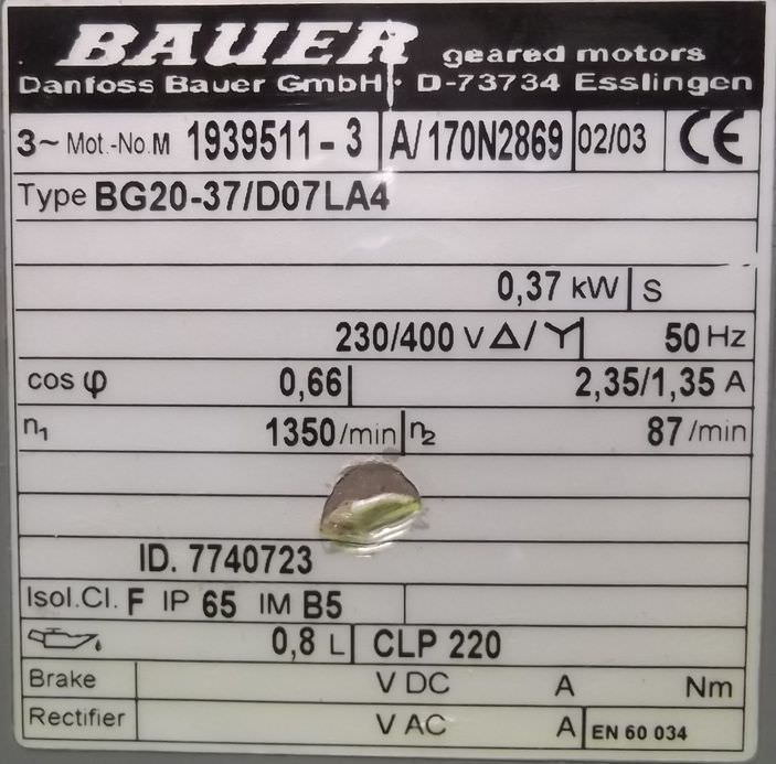 | BAUER | BG20-37/D08SA4-TOF | 200 EUR | [Mar 2012] |