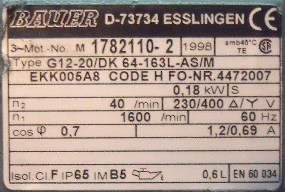 | BAUER | G12-20/DPK884-200 | 450 EUR | |