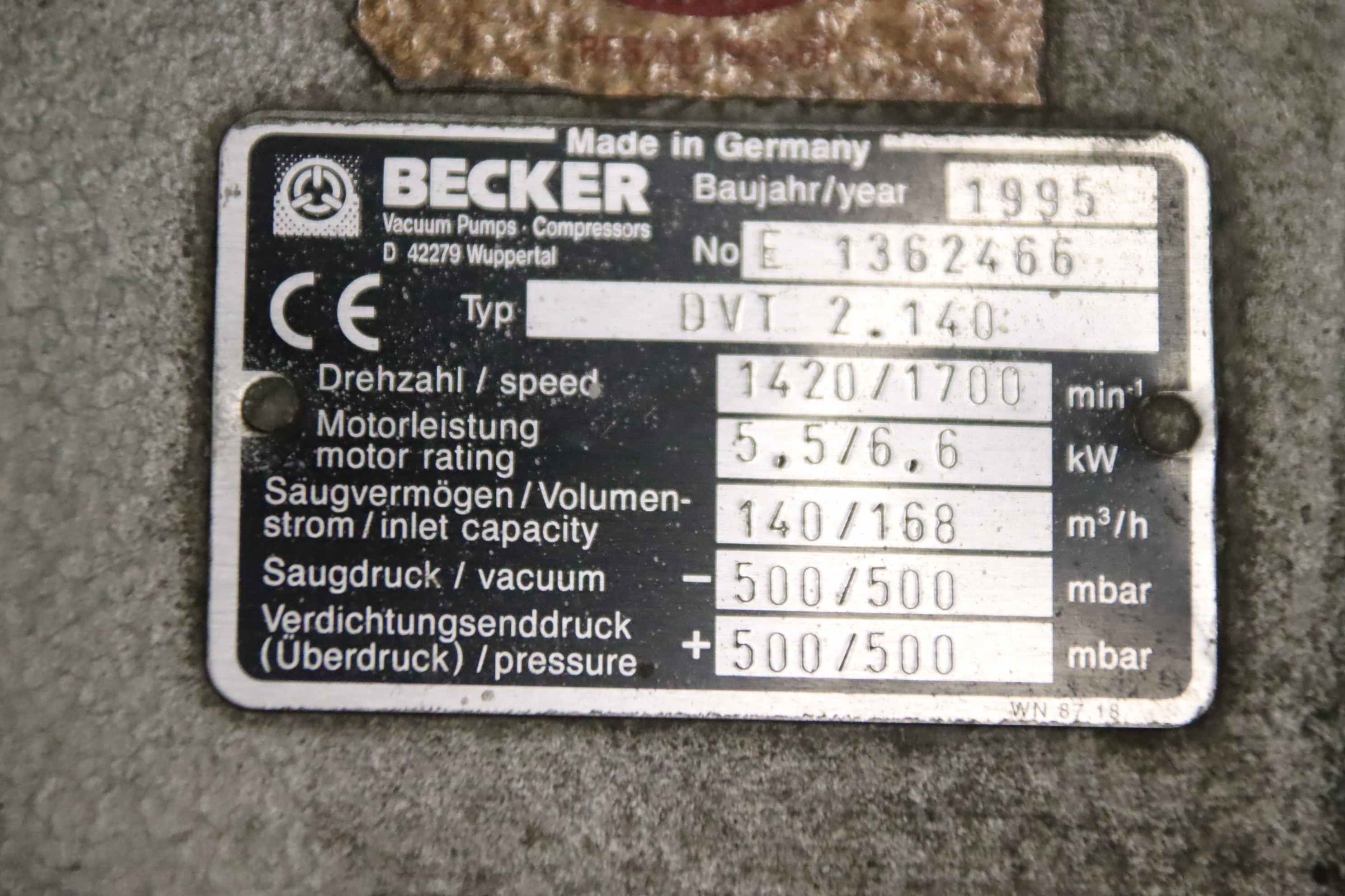 | 1993 | BECKER | DVT 2.100 Druckvakuumpumpe | 650 EUR | [Sep 2020] |