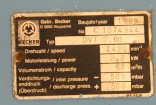 | 1993 | BECKER | DVT 2.100 Druckvakuumpumpe | 650 EUR | [Sep 2020] |