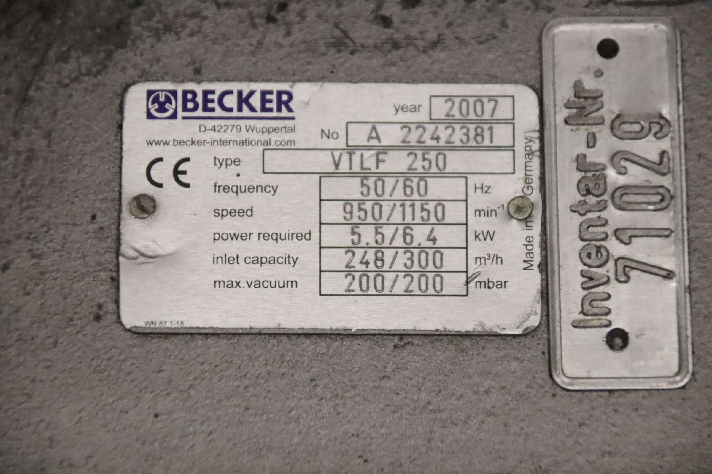 | 2004 | BECKER | Vacuumpumpe VTLF 250 | |