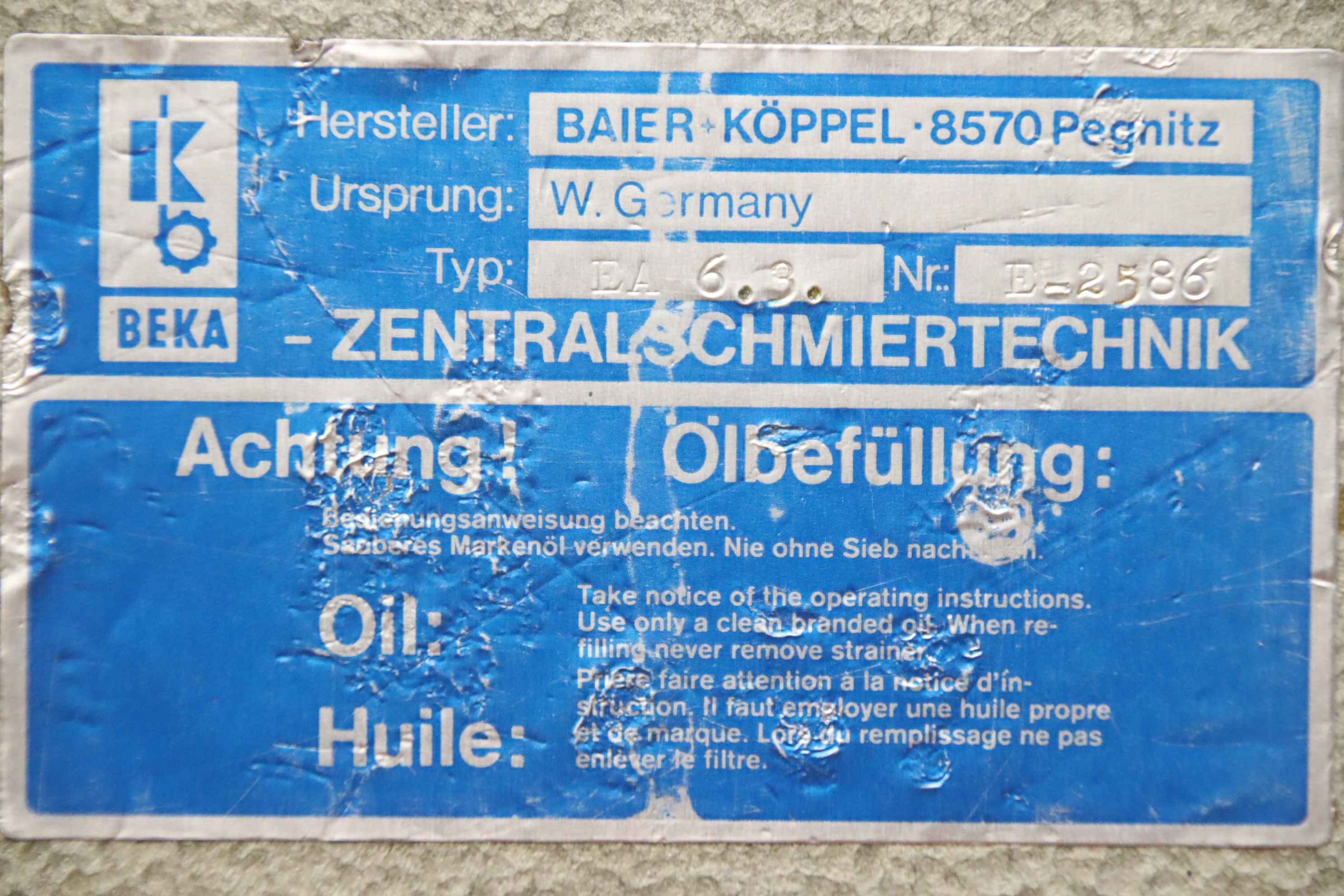 Zentralschmierung BEKA BAIER+KöPPEL EA 6.3.
