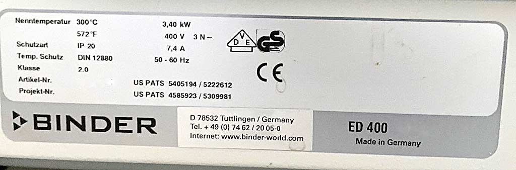 | BINDER | BD 400 #05-82340 | 2000 EUR | [Apr 2015] | |