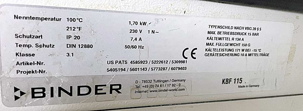 | BINDER | RRK 400 - 600 H | 16000 EUR | [Jul 2019] |