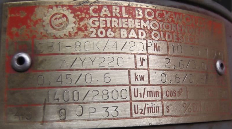 Maschinentyp: Getriebemotor 0,45/0,6 kW 45/90 U/min