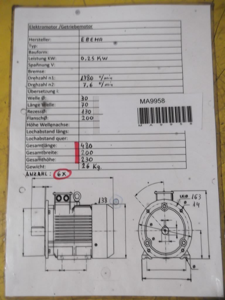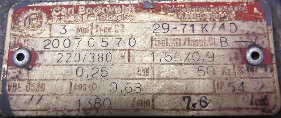 Maschinentyp: Getriebemotor 0,25 kW 7,6 U/min