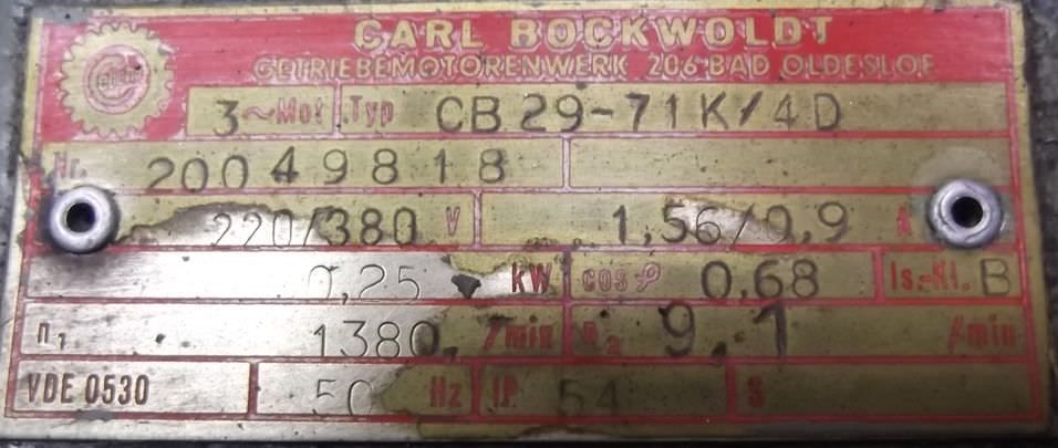 Maschinentyp: Getriebemotor 0,25 kW 9,1 U/min