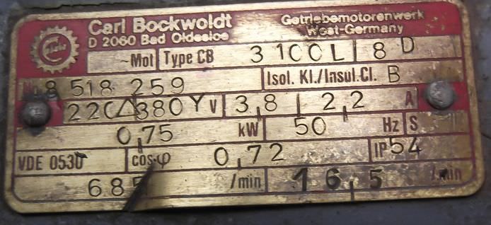 Maschinentyp: Getriebemotor 0,75 kW 16,5 U/min