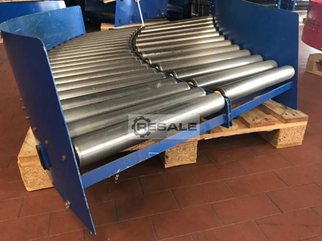 Gebrauchte Budde 2955-670-620 IR795. Budde Rollenkurve rechts oder links 90° mit Durchlauf 2955-670-620 IR795 RA1687 Fabrikat: Budde Laufrichtung: 90° rechtslaufend/ linkslaufend Rollenbreite (RB): 620 mm konisch, Kunststoffbeschichtung Nenn-/Außenbreite (NB): 670 mm Innenradius (IR): 795 mm Länge: 295mm Bauhöhe Rahmen 125 Bauhöhe inklusive Motor: 380 derzeit auf eine Höhe von 700 eingestellt Bauhöhe verstellbar Rollenabstand zwischen 75 und 120 Motor MOVI-Mot 3x300-500V 0,37kW 1400 u/min max Getriebemotor: SEW R17 DRS71S4/MM03 Fördergeschwindigkeit: mit Frequenzumrichter zwischen 0,11 und 0,7 m/s frei einstellbar Lieferumfang: mit 3 verstellbar Stützen, 3 Lichtschranken und einen Rollentaster Eigenschaften: Zustand: gut (gebraucht) Nenn-/Innenradius in mm: 795 Nenn-/Außenbreite in mm: 670 Rollenbreite in mm: 620 Winkel: 90° Angetrieben: JA Lieferumfang: 3x Stützen, 3x Li ...