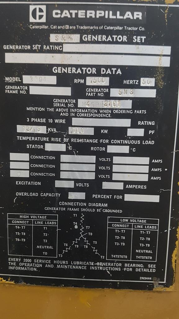 | CAT | 3306B GENERATOR 225KVA USED | ||