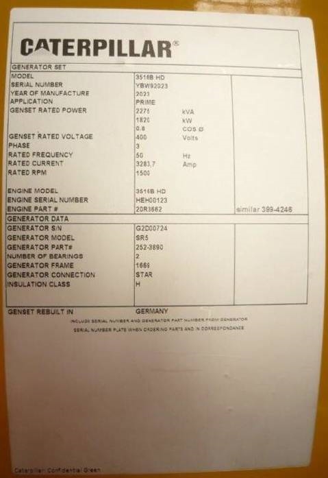 Modell: 3516B HD - 2.500 kVA Generator - DPX-18107