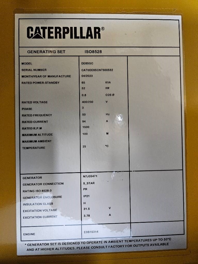 Modell: DE65GC - 65 kVA Stand-by Generator Set - DPX-18206