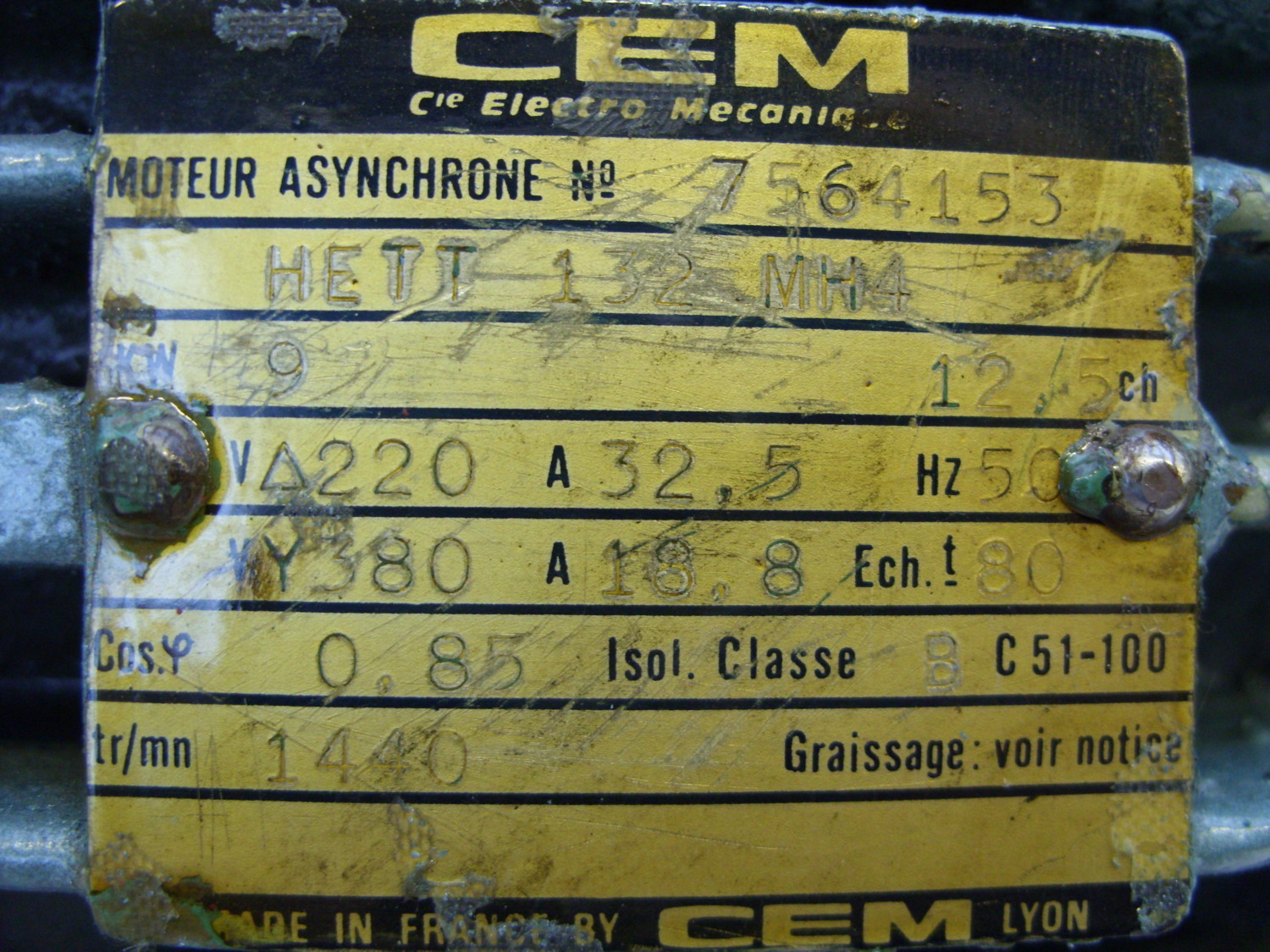 Maschinentyp: Elektromotor 9 kW, 1440 U/min