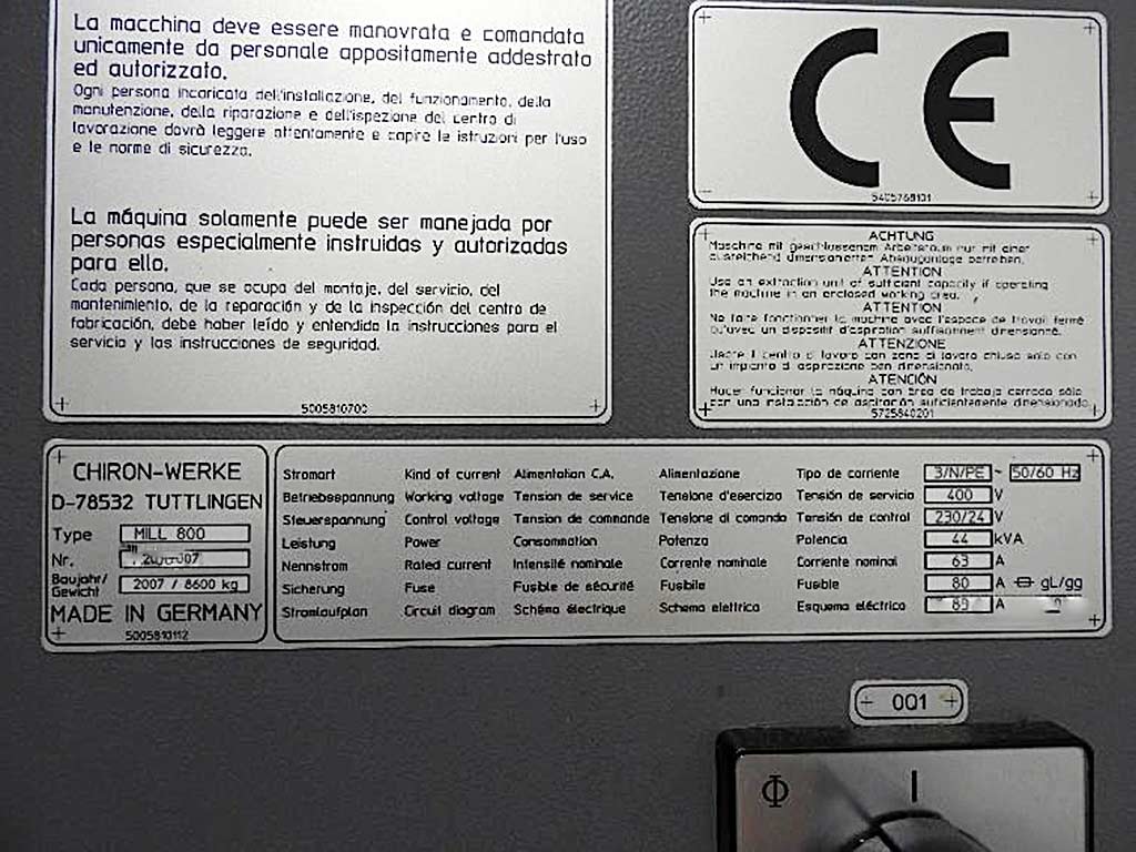 | 2006 | CHIRON | MILL 800 5 axis | |