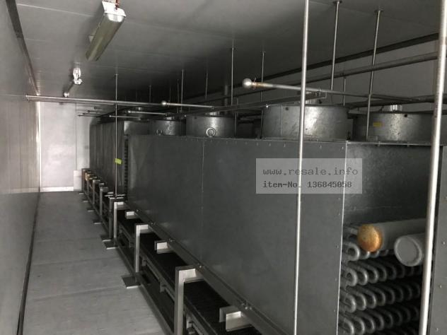 Produktnummer: 1501B-Nr. 1501B-Nr.: Mehrgefrierschrank T-R-nSeriennummer: 2007-150-r-nBaujahr: 2007-r-nGürtelbreite: 1850 mm, Gurtlänge: 18300 mm, Produktlücke: 85 mm, NRefrigerant: NH3, R717, Ammoniak-Nr. nKühlleistung: 224 kW,-r-NE-Verdampfer: 3 Pcs. Raffel, 2266 m2, Leistung: 3 x 400V, 55kW, NAbmessungen: 19800 x 3580 x 3450 mm
