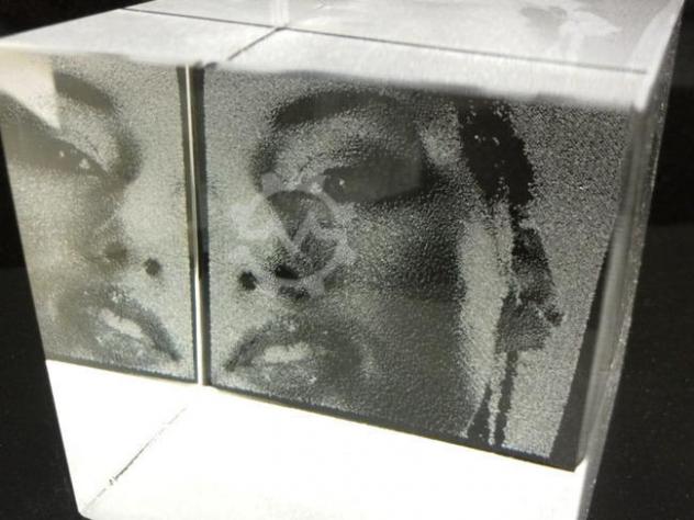 verschiedenen Grautönen graviert werden.